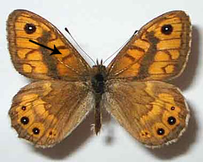 В дискальной ячейке переднего крыла цвет фона рыжий.